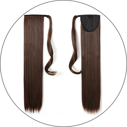 Her finder du vores Clip- on hestehale af ægte hår. Den passer perfekt til forskellige typer af opsætninger. Fordi hestehalen er lavet af ægte hår er det muligt at glatte og style håret som du ønsker. Du kan nemt sætte den på ved at sætte kammen fast og lukke velcrobåndet.
